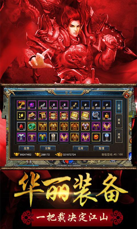 神装,道具,武器等着你来领取,玩家可以用道具来升级自己的装备。