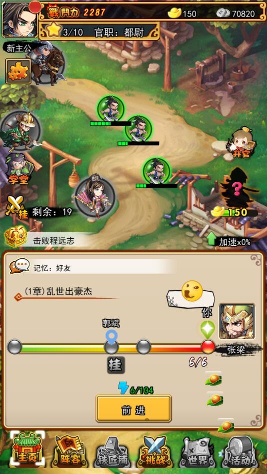 放置挂机,轻松过关。游戏有独特的挂机系统,让主公轻松获得大量资源。