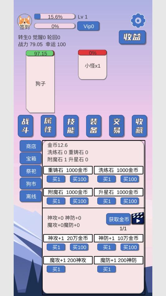 凹觉醒,(个人建议狗币买神攻,少买点一两点就够了,别一直买,然后买金币)