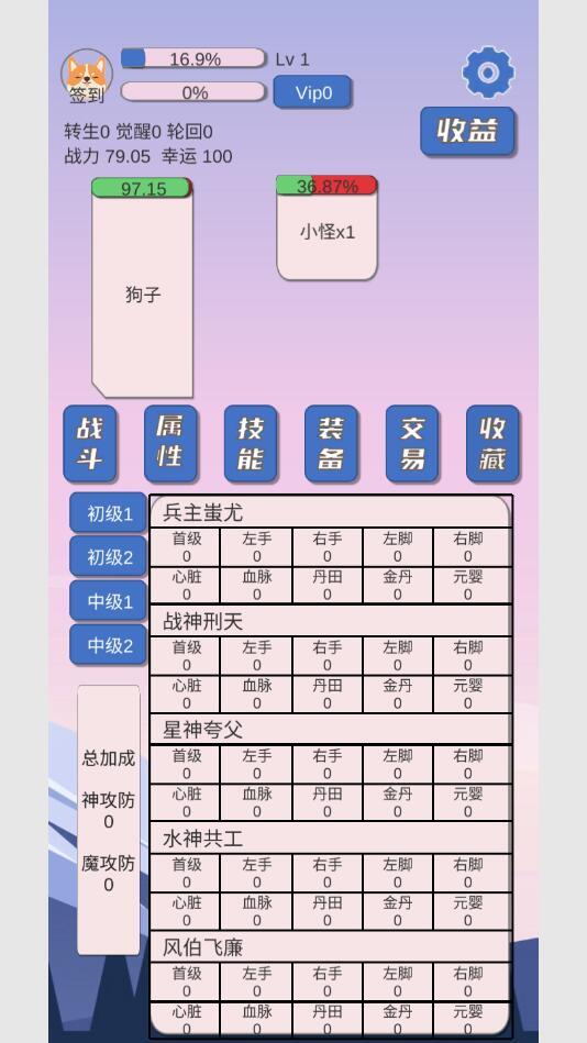 神攻,神防可以理解高级的攻击防御,但是影响伤害和受伤特别严重(具体不清楚,狗作者没给算法),后期可能打不动BOSS就是因为你神攻没对面高(可以点怪物,然后看属性),这时候就需要收藏慢慢刷了(刷收藏的前提就是百级洪荒,20幸运以下,概率为1),也可以靠上古套装(加神攻的,具体属性也不用急,迟早会刷出来的),但是前期一般是靠上古套弄神攻(打的动就行了,要神放干啥),然后打转生