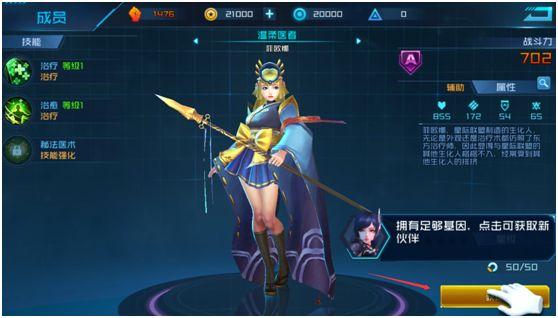跟随教程前往招募,获得菲欧娜(A级奶妈)的基因,再前往成员界面完成解锁。这里的教程中并没有强制玩家上阵菲欧娜,所以大家要自己在布阵界面手动上阵菲欧娜,此时的菲欧娜并不需要刻意升级。