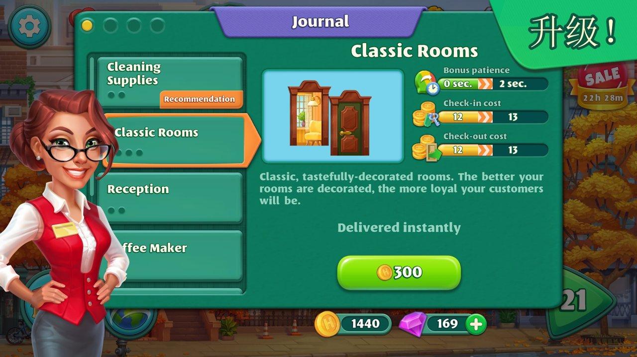 3、通过各种各样的方式去提升酒店的收益,轻松使用金钱去扩建酒店,增加各种服务项目。