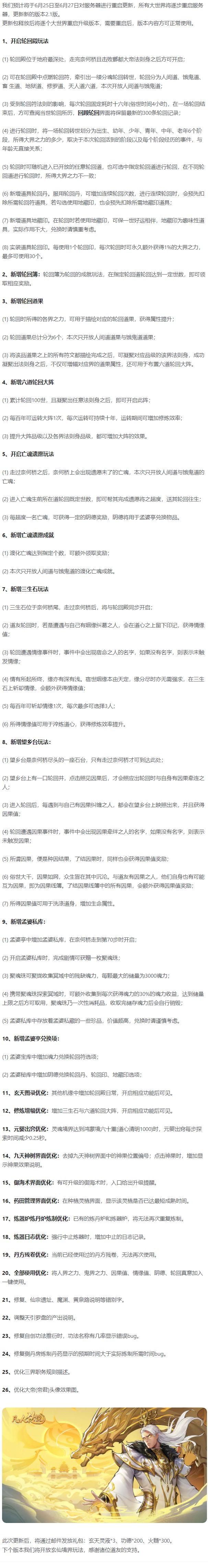 《凡人传说》2.1版本更新公告