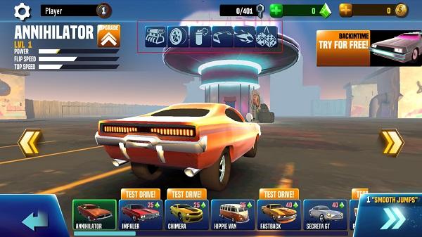3、随着挑战难度系数的增加,车辆更换或改装车辆就显得格外重要,回到游戏主界面,点击右下角便可进行车库。