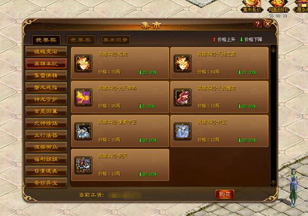 如果你想要使用工资淘到更多的宝物,可以点击“我要买”一项,有各种琳琅满目的商品等你来挑选。类别也多种多样,有魂魄灵石、英雄本纪、神龙守护、玄灵羽翼、元神修炼、五行法器、日常道具等。因为集市内所有道具买卖使用的均为工资,玩家在游戏中还可以使用免费途径来获取工资,快用工资来换好礼。