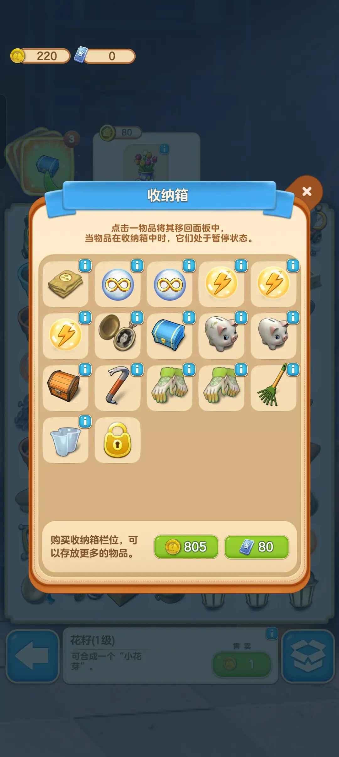 ③、在完成露台区域的修剪灌木丛任务可以开启收纳箱功能,可以将一部分物品存放在收纳箱中。