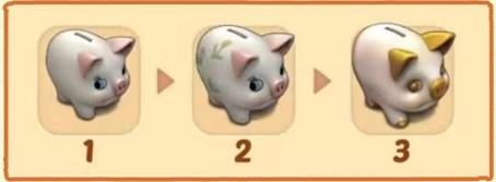 ①、1级存钱罐的容量是15次,两个1级存钱罐可以各自点击14次后,合成一个2级存钱罐。
