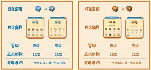 Tips: 当点宝箱剩下最后一次时,可用该颜色宝箱与另一个相同颜色但未开启的宝箱进行合成,届时得到一个全新高级宝箱;