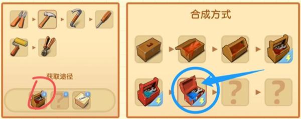 Tips:②、点击产出源道具的右上角可以查看当前源道具的产出链(只显示已合成物品)