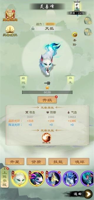 灵兽上阵比较简单,根据上阵灵兽的品阶获得对应的光环,提升幅度由品阶最低的灵兽决定。