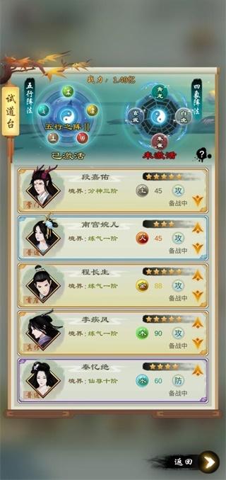 根据上阵弟子的五行属相能够形成不同的阵法,其中门槛最低也是大家初期最好组的就是五行之阵了,不过相应的提升也比较有限,随着弟子的增多后续也会根据使用场景替换。