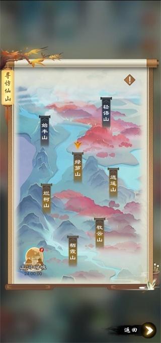 ①寻访仙山:寻访仙山可以获取挂机收益,收益种类取决于你的推图进度,所以每天除了领取8小时收益以外,也要尽量多开一些仙山。挂机收益里包含了法宝、丹药、经验道具、强化石等等物品,需要在洞府中装备/使用才能转化为战斗力。