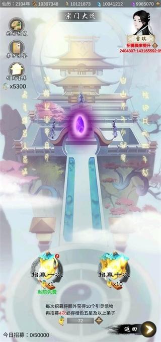 ①宗门大选招收弟子与灵兽诱捕,每日一次免费