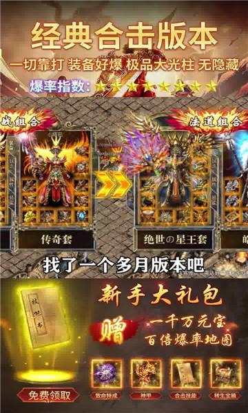 2.复古传奇手游,高爆率,合击后战力秒+100w,装备全靠打!