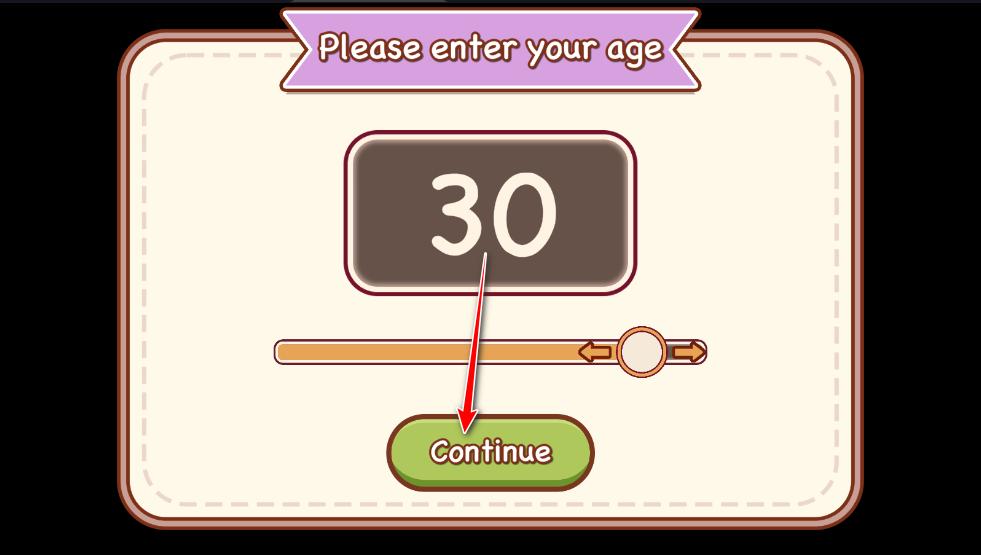 1.在本站下载安装并运行可口的咖啡美味的咖啡,拖动滑块选择自己的年龄,并点击Continue