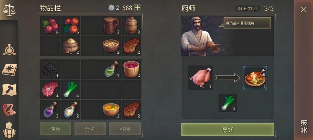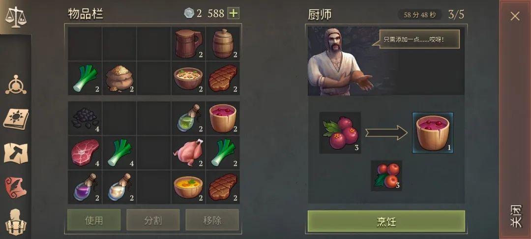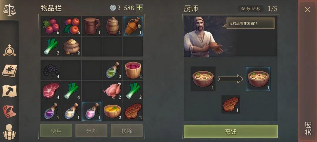 冷酷灵魂黑暗幻想生存红猎厨师菜谱