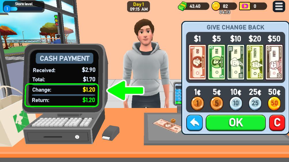 7.回到店内,点击收银台开始收取顾客的钱款。