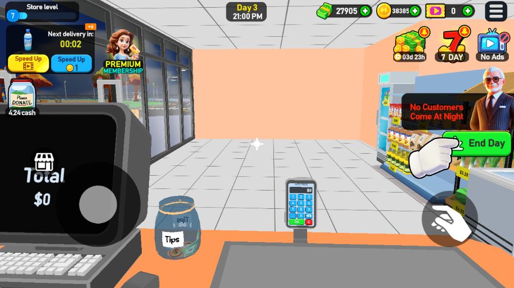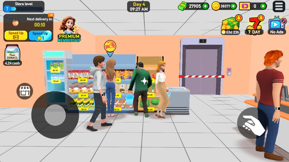 超市大亨3D是一款模拟经营游戏,玩家需要负责超市的日常运营,面对零售业的挑战,如来自竞争对手的竞争、库存波动等,玩家需要做出明智的决策,以保持超市的竞争力并确保客户满意度,随着超市盈利能力的增长,玩家可以投资扩大业务,例如在不同地点开设新店、解锁更广泛的产品种类,以及升级现有设施来吸引更多顾客。