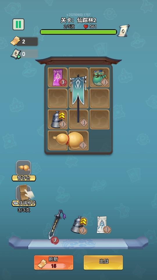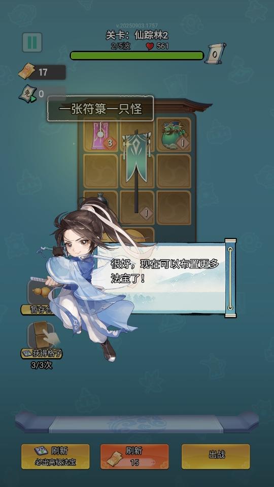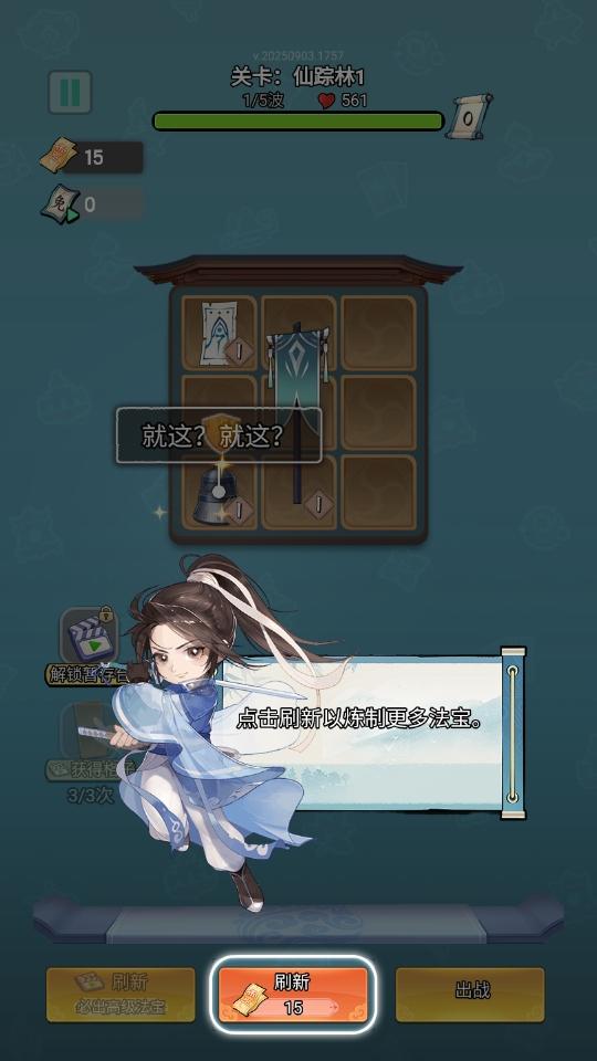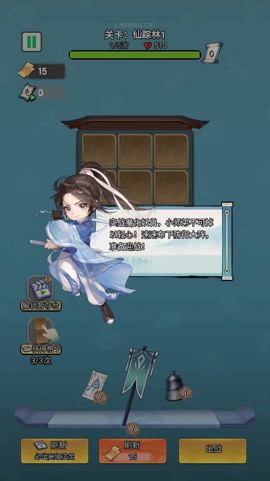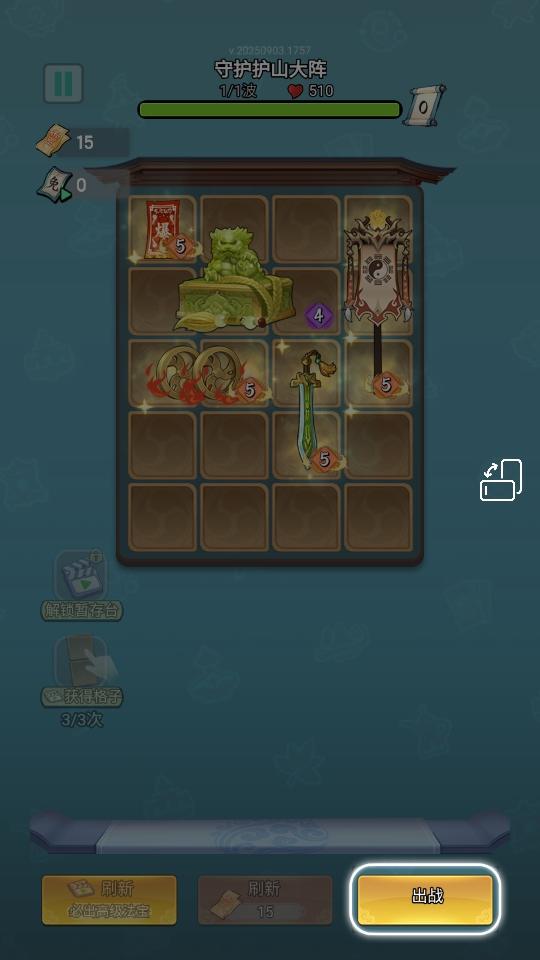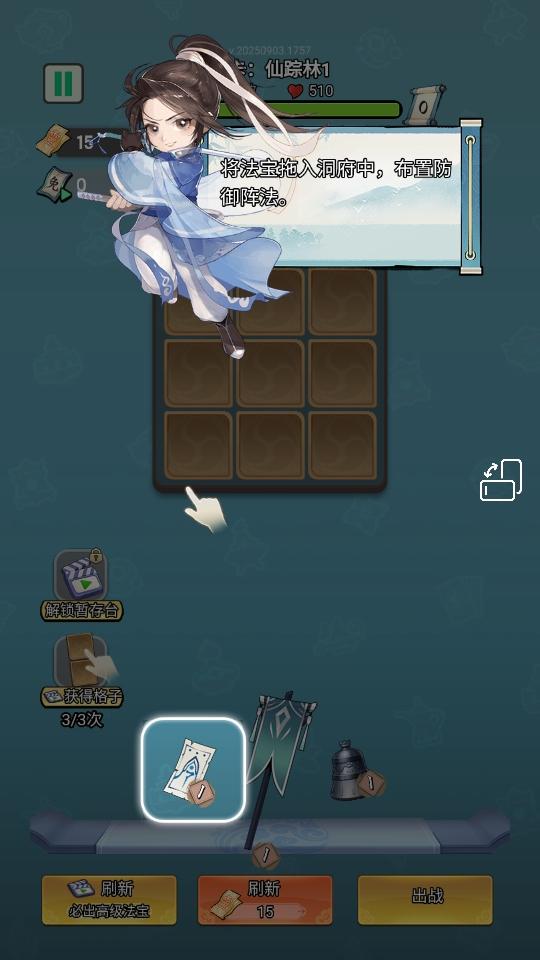 看广告解锁背包格子数,灵符也有概率刷新出格子,扩大背包格子数,可以摆放更多法宝。