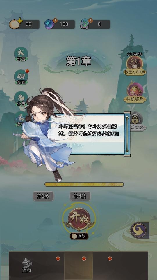5、小师弟留步!有小波妖兽滋扰,师父嘱你进行实战练习!