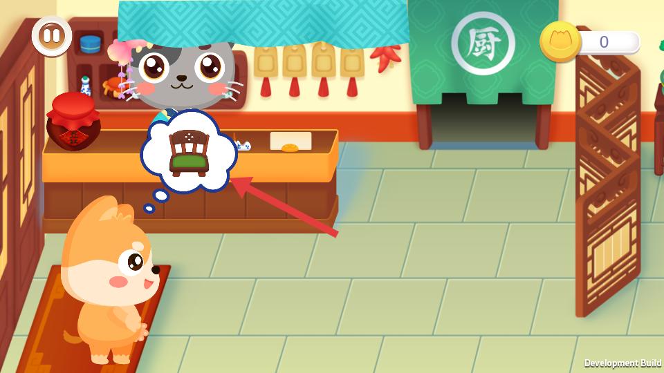 1.根据猫咪的需求,点击椅子图标,准备接待顾客。
