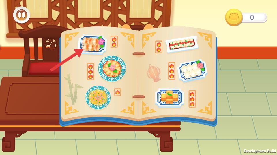2.打开菜单,选定顾客指定的菜品,进入烹饪环节。