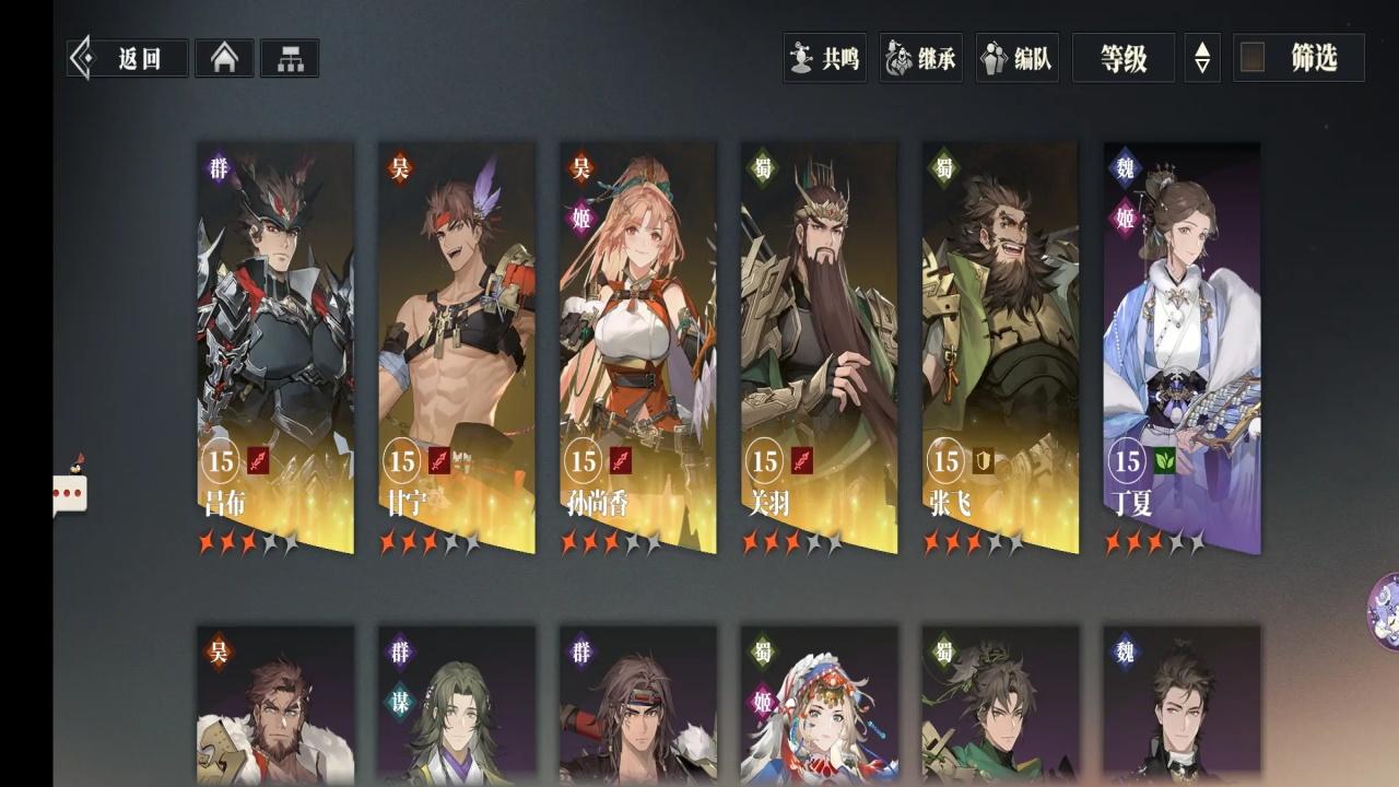 群雄还有一套未完全成型的毒伤体系,以贾诩李儒为核心进行搭配,打装备本什么的很好用,但体系不完整,需要吃其他人的练度。