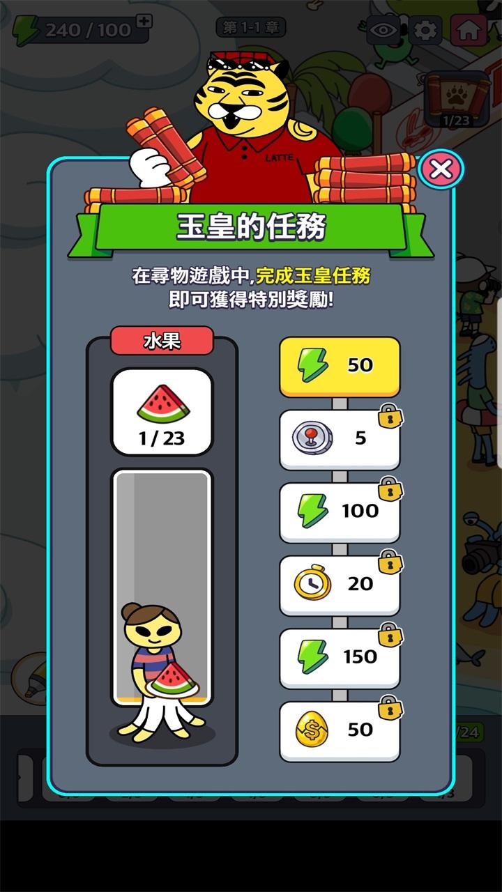 1.关卡挑战需要完成找到下面的物品即可闯关成功。