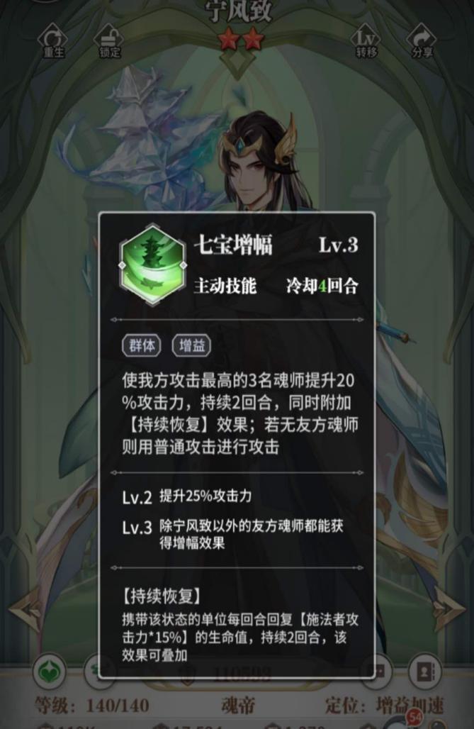可以看到,这一套加点,有治疗,有解控,有护盾,大大的保证了己方魂师的生存能力,配合阵容中的叶泠泠,堪称完美配合。