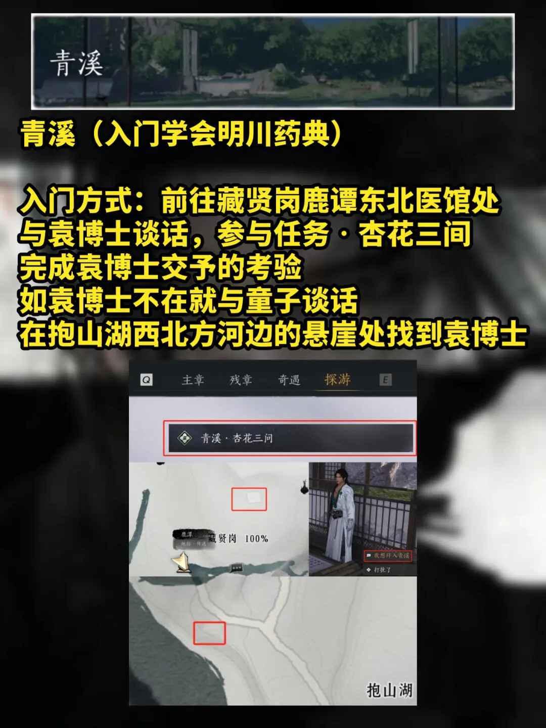 入门方式:前往藏贤岗鹿谭东北医馆处与袁博士谈话,参与任务 杏花三间