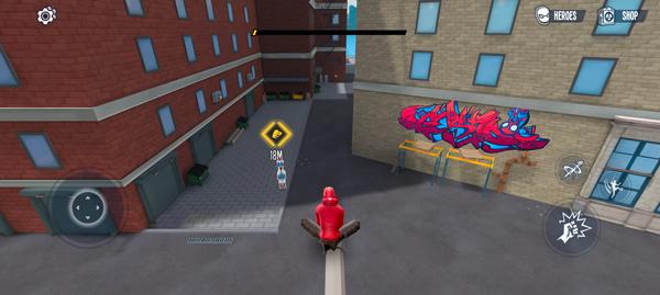 4、游戏采用了横版操纵,屏幕左边控制移动,右边则为攻击、发射蜘蛛丝、跳跃等键位;
