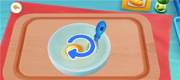 5.接着,将鸡蛋打开,通过滑动屏幕来进行搅拌。