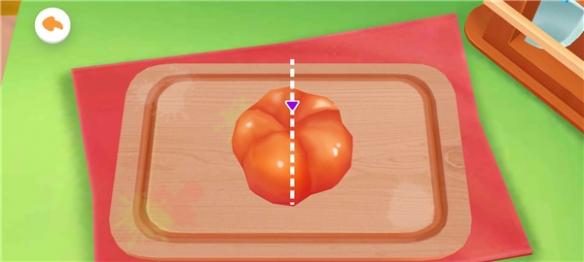 2.按照游戏提示进入操作界面,拉动屏幕中的虚线来切开西红柿。