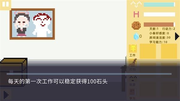 3、玩家需要保持房间的清洁度,以维持小春的心情值。