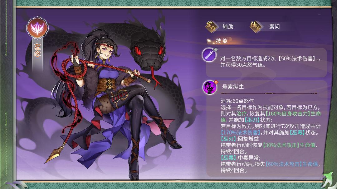 左念的定位是阴属性的辅助,来自于仙派素问。