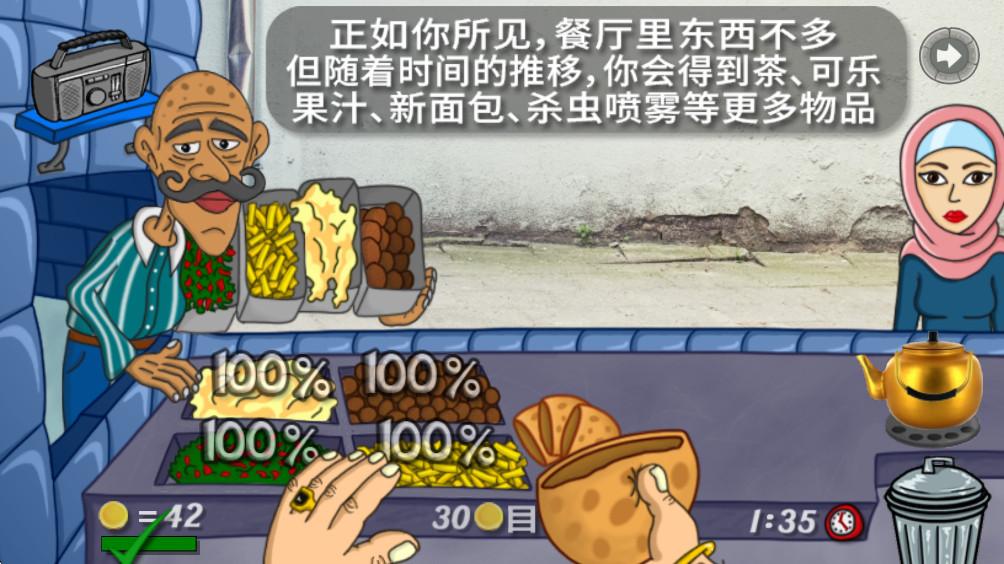 6.放置好了配菜点击顾客即可给它,饮料需要拉动给,并获得金币,直到时间结束,如果未达到目标金币无法前往下一关。
