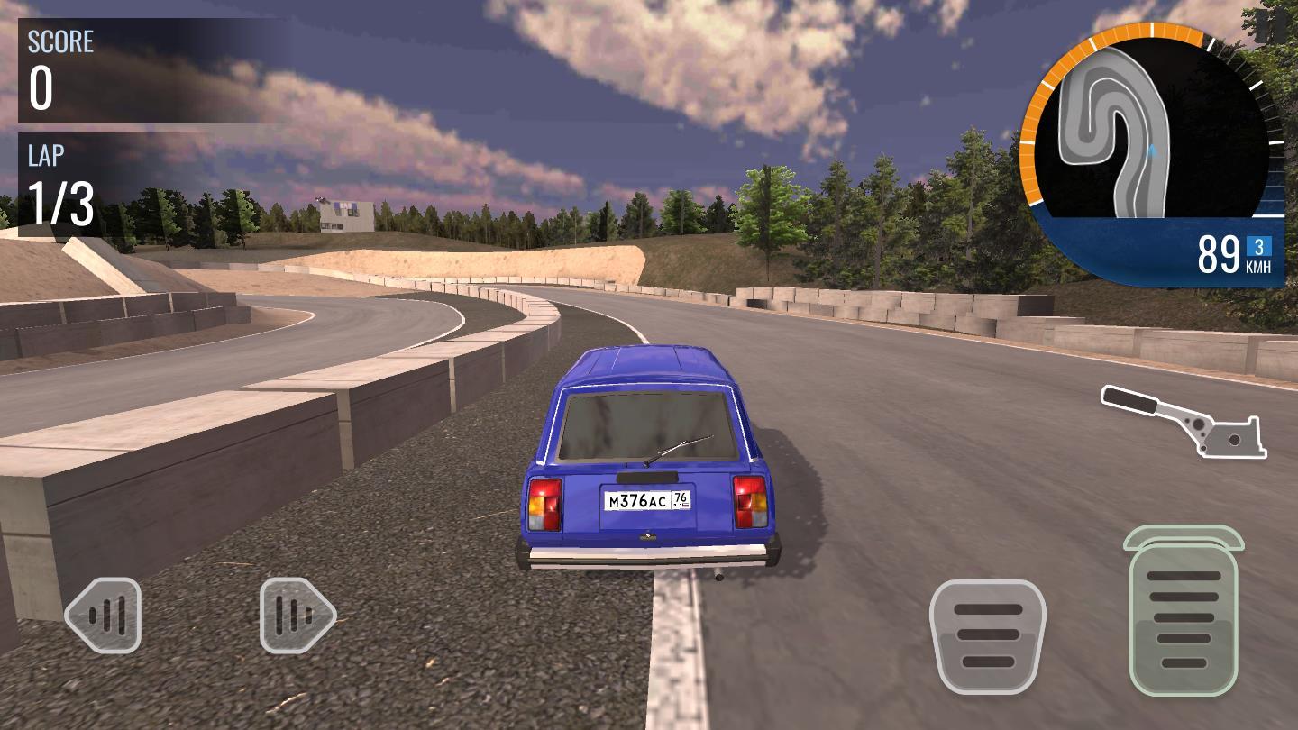 6、玩家需驾驶俄罗斯汽车进行跑圈,屏幕左边控制方向,右边则为油门和刹车;