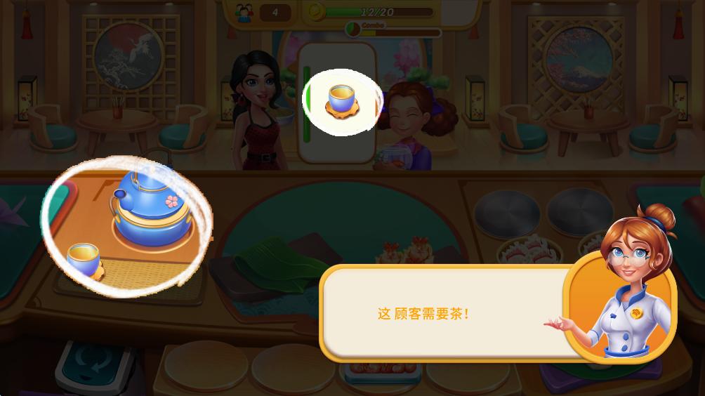 5.需要茶的话点击倒好的茶就可以直接上菜。