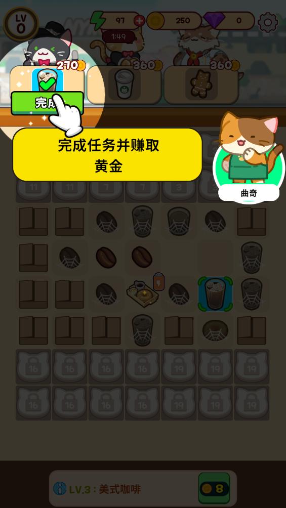 猫咪咖啡厅是一款融合了合并、餐厅经营和治愈元素的创意休闲游戏,你将踏入一个温馨的猫咪咖啡馆,成为店主,运用自己的智慧与策略通过合并不同的食材与材料,制作出一系列美味的餐点和饮品。在游戏过程中,你不仅要迎接各种顾客的需求,还要不断创新食谱,打造出更多独特的美食。随着游戏的进行,越来越多的猫咪和顾客将光临你的咖啡馆,给你带来新的挑战与乐趣。