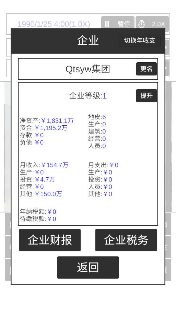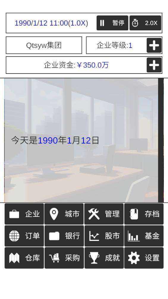 我的集团是一款充满策略和创新的商业模拟经营游戏,玩家将扮演一位年轻而富有雄心的企业家,开始从零建立一个多元化的商业帝国,你需要考虑市场需求、员工管理、资金流动和风险控制等各个方面,以确保公司稳步发展,通过不断扩大市场份额,收购其他企业,甚至进入国际市场,玩家将有机会打造一个全球性的大型企业集团。