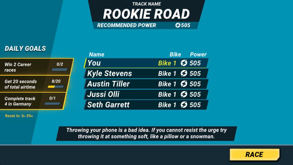 4、开摩托就这几个按键,起手操作推荐:左手按住油门,右手点按重心向前/向后,控制不要摔倒即可。