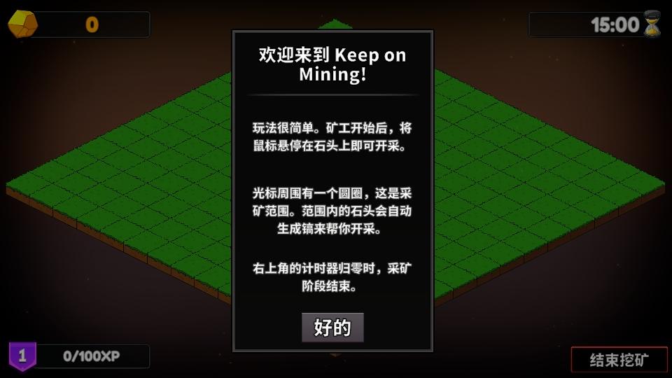 2、正式开始后点击矿石就可以进行挖矿,在悬浮球范围内的所有矿石都会被采集。