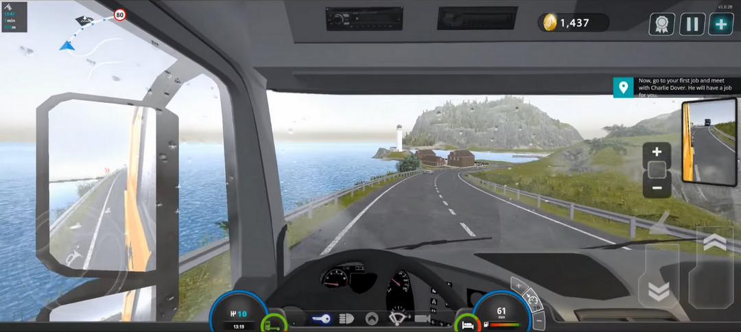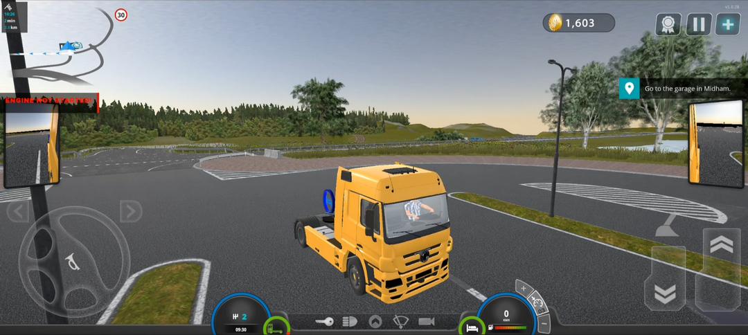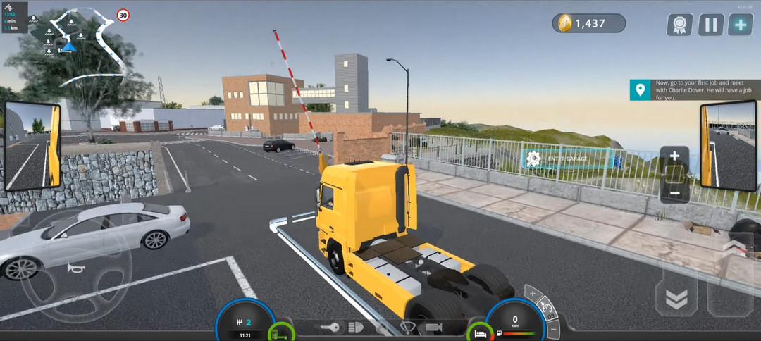 4.游戏支持第一人称视角的驾驶方式,通过虚拟方向盘与按键控制车辆驾驶,在小地图指示下完成运送目标。