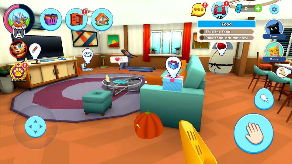 3.找到西蒙的碗点击小手把猫粮放进去。