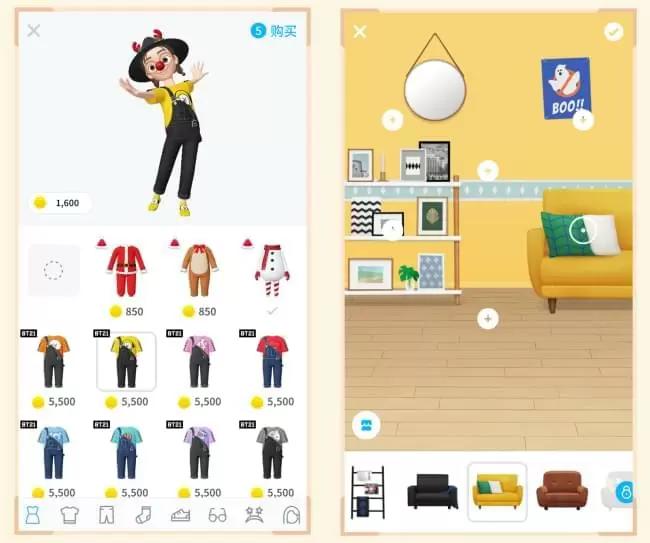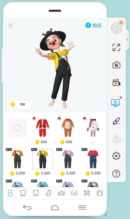 在“我的衣柜”下,Zepeto提供不同的装扮:上衣,裤子,袜子,鞋,头部装饰等,圣诞节套装、晚礼服、水手服、校园装等等。你还可以在“我的空间”下装扮自己的空间,有的装饰物是免费的,有的需要花金币购买。