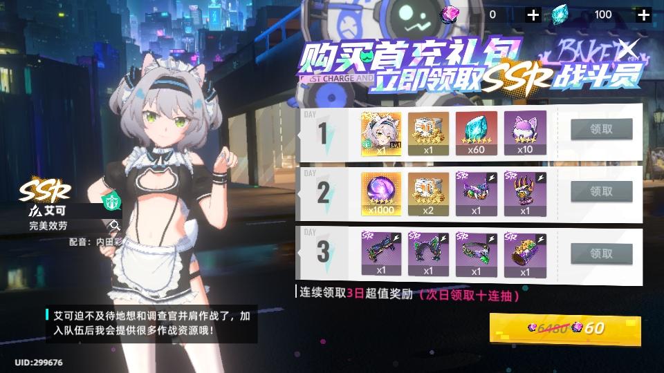 第一个是新角色的限时UP池,单UP,有60小保底和180的大保底,出SSR时50%出当期UP(测试期间实测就没见歪过),池子中有其他所有的常驻角色(能歪你需要的常驻)。