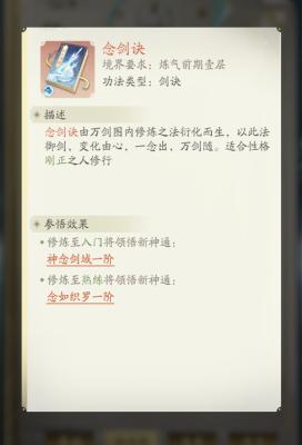 进阶功法:千锋聚灵剑.春黎剑阵.青蟠剑阵.新·青元剑诀.念剑诀.无生剑诀