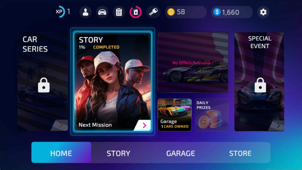 竞速旋转是一款结合了极速驾驶与精密策略的赛车竞速游戏,你将通过巧妙的驾驶技巧和精细的赛车改装,挑战极限赛道,迎接一场场激烈的竞速对决,从复杂的城市街道到崎岖的山路,每一条赛道都有其独特的设计与障碍,你需要根据地形特点调整驾驶策略。游戏中的天气变化和昼夜交替也大大增加了比赛的不确定性,考验你在各种环境下的应对能力。