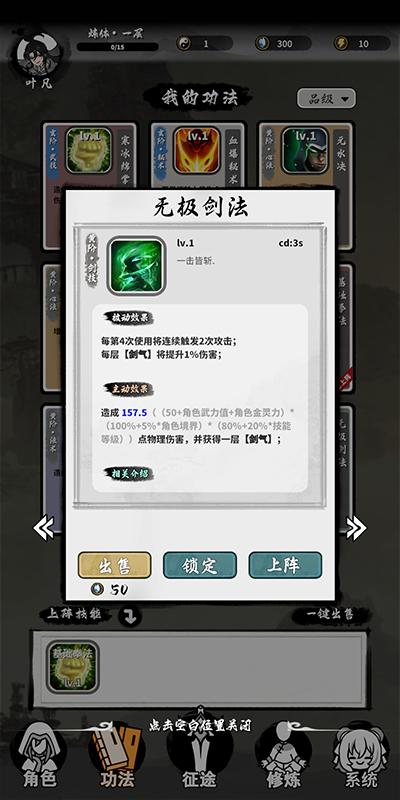 别的像什么无极剑法这些全部卖了。卖掉的钱来升级这些技能。