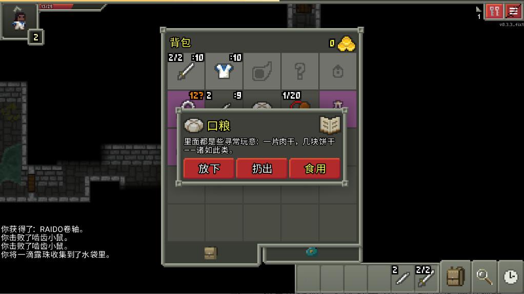 3.这个时候就正式开始了你的冒险,你被降入地牢的第一层。